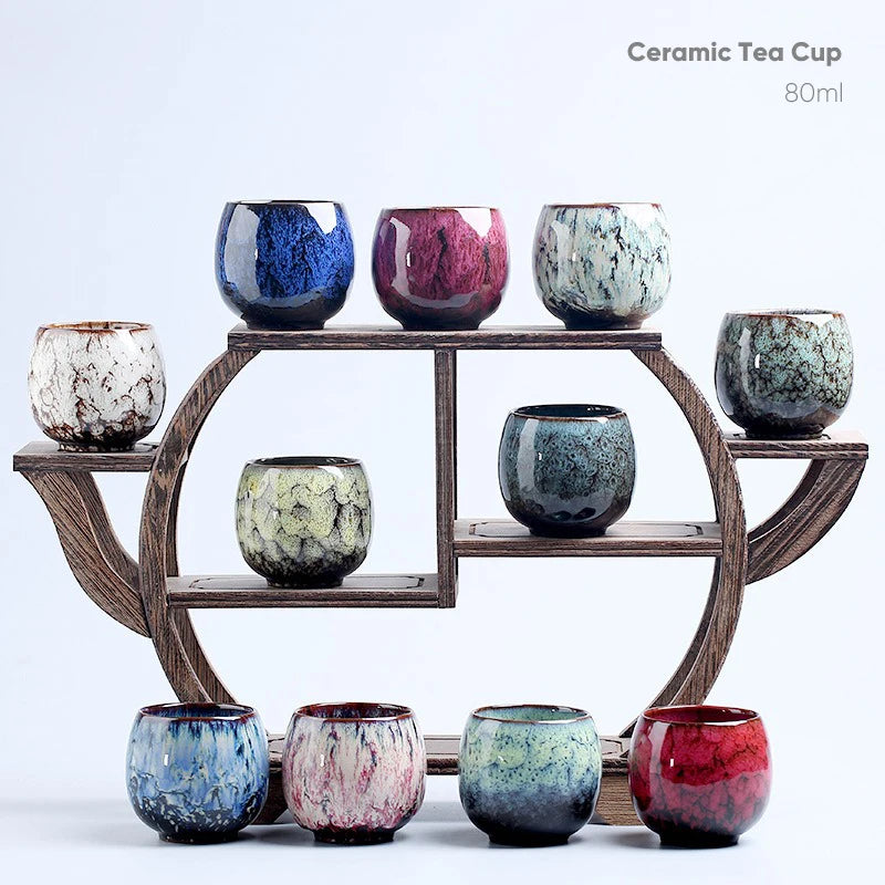 Transform your tea time with this stunning ceramic cup, featuring a unique kiln-change glaze that makes each piece a one-of-a-kind masterpiece. The intricate patterns and colors add a touch of elegance to your table.